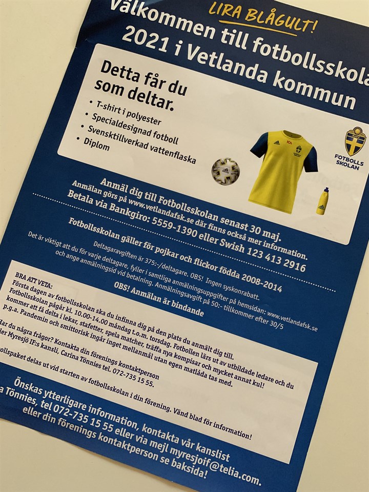 Glöm inte att anmäla ditt barn till årets fotbollsskola i Bäckseda v.32 SISTA ANMÄLNINGSDAG ÄR 30/5 www.vetlandafsk.se